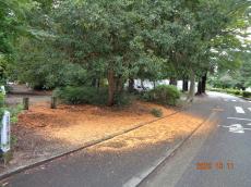 多磨霊園を東西に走る栃ノ木通り、この時期は栃ノ実が落下してきてちゅういが必要です。卵位の大きさでかたいです。当たるっと結構痛いです。 |