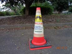 もうじき秋のお彼岸です。多磨霊園正門、管理事務所前の駐車規制が始まりました。