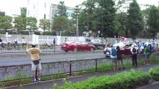 多磨霊園の横の道をロードレースが走って行きました。