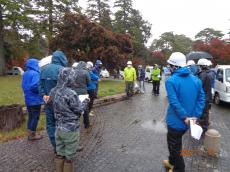 ボランティア活動で霊園内の