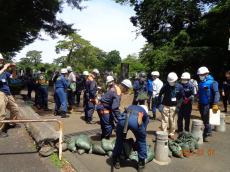 毎年のように起こるゲリラ豪雨に対応する為、警視庁・消防庁・東京都・地元石材等による止水訓練を行ってきました。