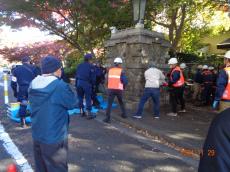 多磨霊園正門の止水訓練 |